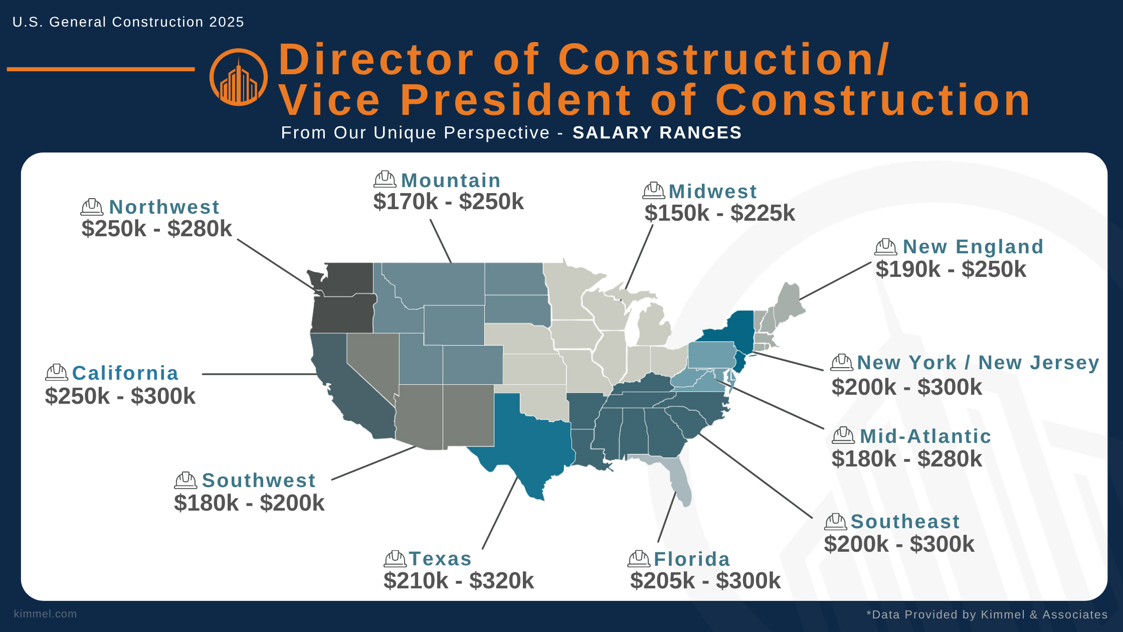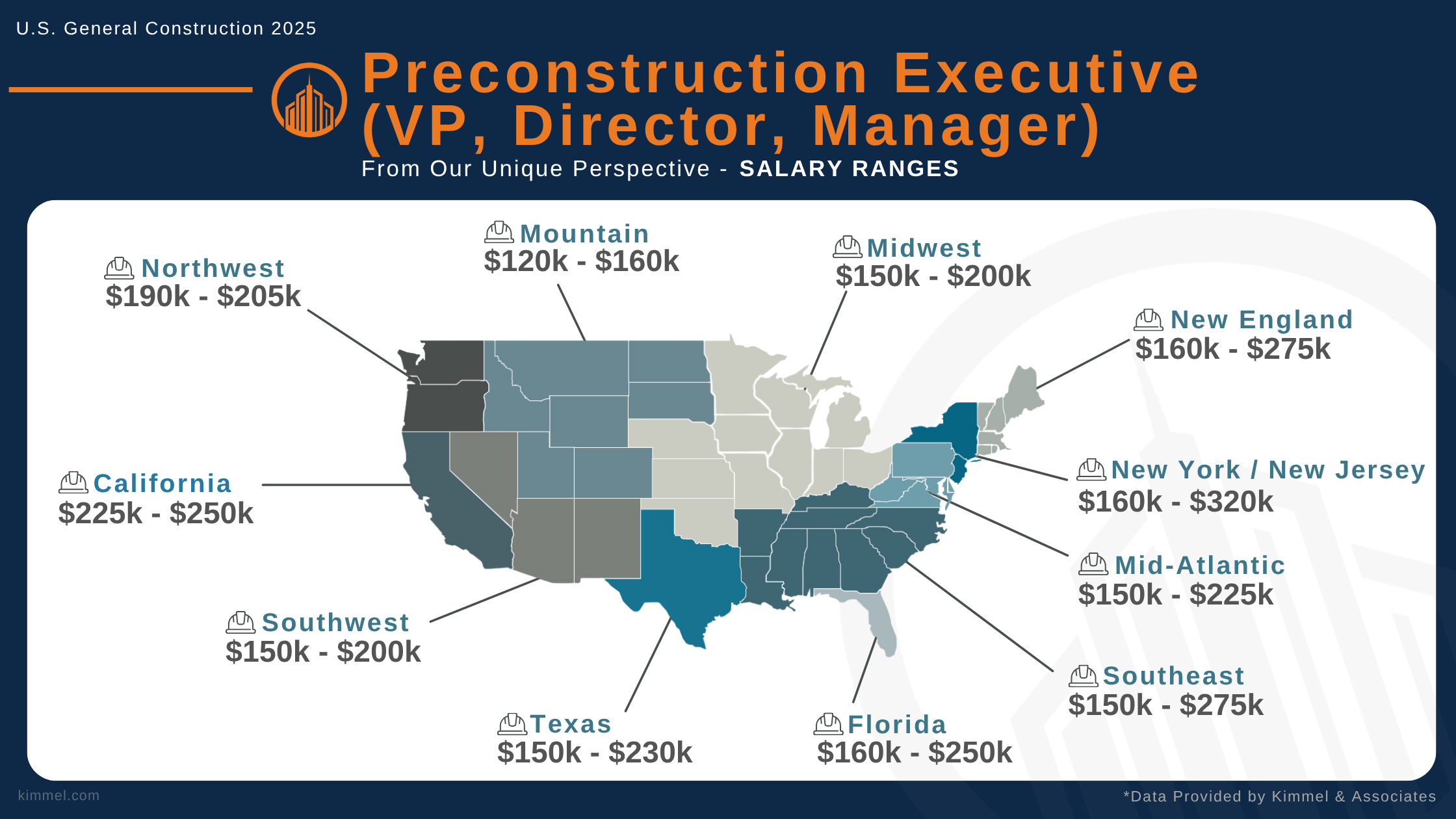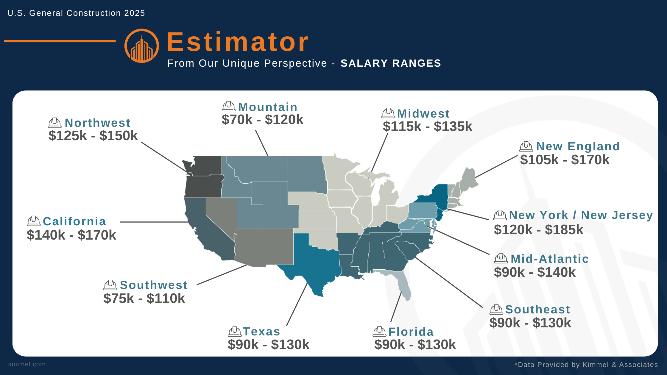 At Kimmel & Associates, our consultants speak with thousands of construction professionals every year, giving us a unique perspective and real-time insights into how compensation, hiring trends, and leadership needs are evolving across the general construction industry. We use this knowledge to better serve both companies and professionals nationwide.